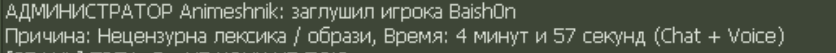 Гравець (Дядя) якій був попереджений за мат в товою строну , те що ти не побачив в консолі що я його попередив це твої проблеми. Ти почав обговорювати мої дії, і я заглушив твій чат на 5 минут правило 2.3